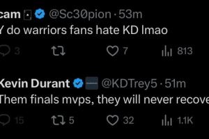 网友A:“勇士球迷真的恨KD啊,哈哈。”