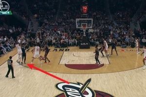 危险动作!杜兰特投三分造成亨特一级恶意犯规 火箭拿到3罚+球权
