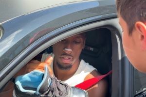 要走了!科曼驾车离开塞贝纳大街,给球迷签名&下车合影