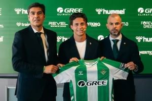 体育资讯7月22日讯 今天,贝蒂斯俱乐部正式宣布里克尔梅成为球队的新成员,他与俱乐部主席安赫尔-哈罗和体育总监曼努-法哈多一起亮相发布会。