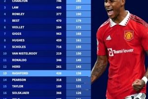 体育资讯7月24日讯 巴萨已经官宣租借曼联前锋拉什福德,《转会市场》统计显示后者也已经是曼联队史第13射手。