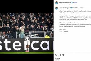 体育资讯7月24日讯 尤文21岁边锋姆班古拉在今日官宣转会不莱梅,他也通过社媒发文和尤文告别: